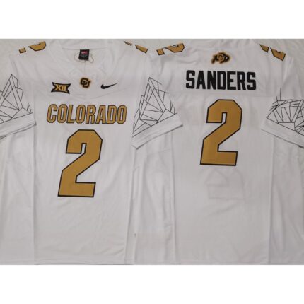 Men’s Colorado Buffaloes White #2 Sanders Stitched Jersey